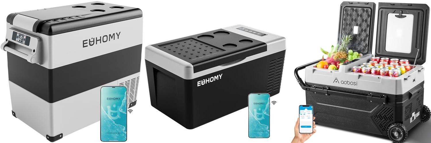 The EUHOMY 12 Volt Refrigerator is a versatile portable cooler that keeps your food and drinks perfectly chilled, whether you’re on a camping trip, traveling in your car, or just need extra fridge space at home. Its large 59QT (55L) capacity holds a lot, and it can even freeze things down to -4℉. Plus, you can control it with your phone!