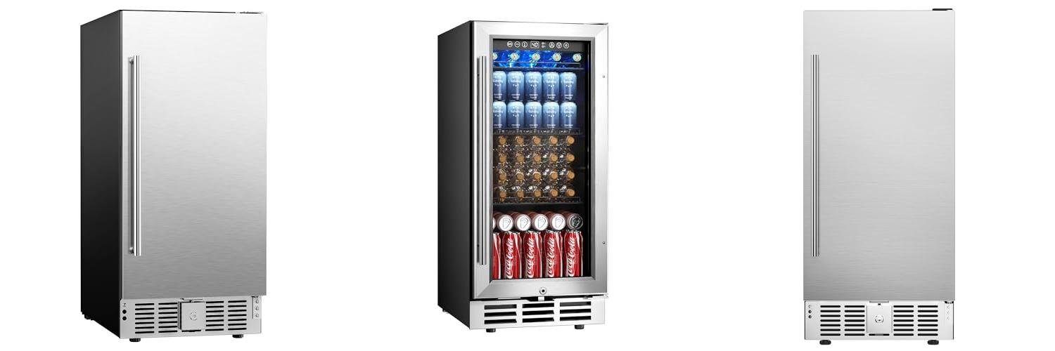 The EUHOMY Beverage Refrigerator is a compact and convenient way to keep your drinks cold. This 15-inch under-counter fridge holds up to 127 cans. It has a stainless steel door and is perfect for your kitchen, living room, or office. It’s designed to be built-in or used as a freestanding unit.