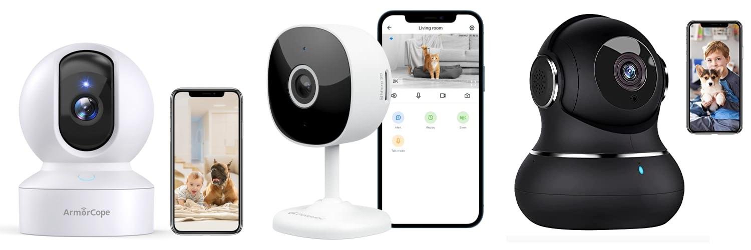 The Armorcope pet camera is a 2K HD camera for your home. It lets you watch your pets or baby from your phone. This camera has a 360° view, night vision, and motion detection. It also has two-way audio, so you can talk to your pets.