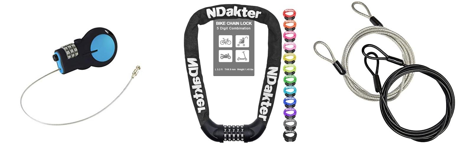 - Cable locks: These are flexible and easy to use. They are less secure than U-locks.
