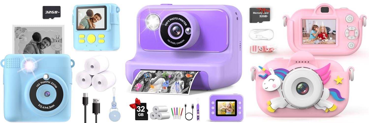 The Kids Camera Instant Print is a fun gift for kids! It lets children take pictures and print them instantly. This purple camera also takes videos and has many cool features. It’s made for kids ages 3-12 and comes with a 32GB card. Kids can have lots of fun capturing memories with this camera.