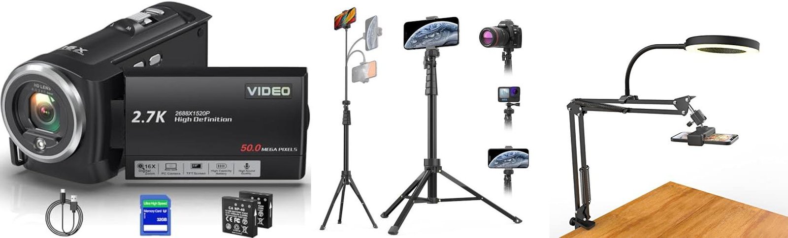 This all-in-one Overhead Camera Mount is built for creators! It’s designed for anyone who wants to record videos, livestream, or take photos from above. The mount has a ring light, a flexible arm, and a desk tripod. It’s perfect for YouTube videos, cooking tutorials, nail art, and more.
