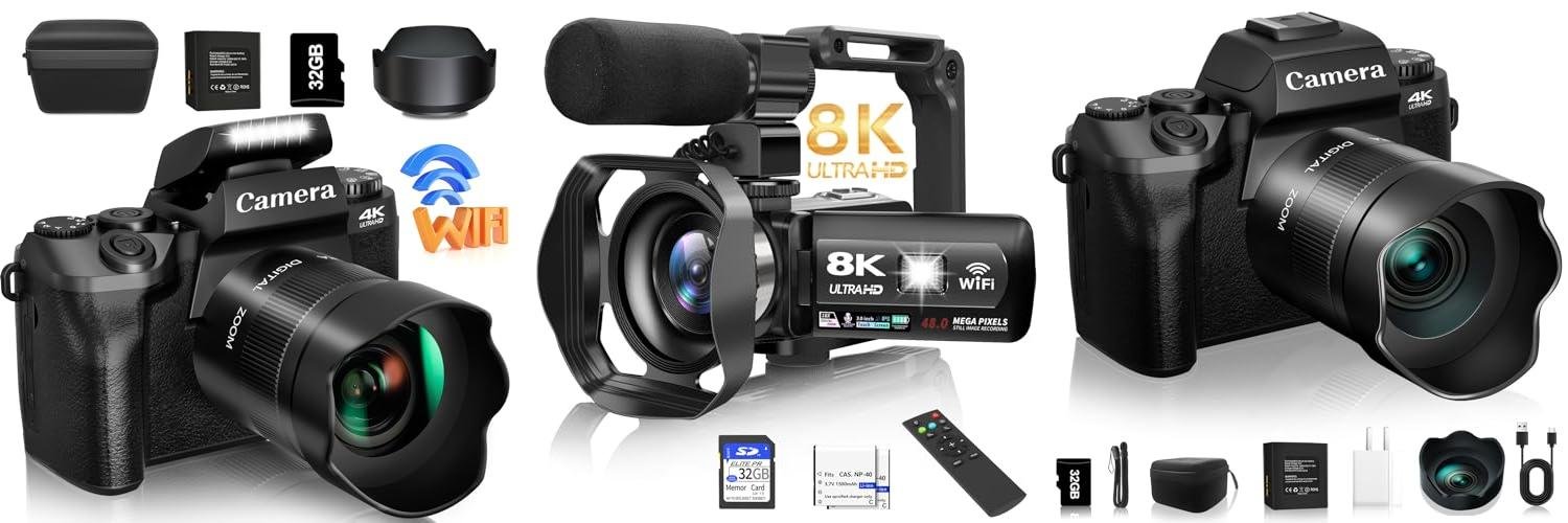 Capture your world in stunning detail with the Video Camera, 8K Camcorder! This camera is packed with features. It’s perfect for vlogging, recording family events, or just having fun. It shoots in 8K resolution and takes 48MP photos. It also has a 3″ touchscreen, WiFi, and even infrared night vision. This camcorder is designed for beginners, making it easy for anyone to create amazing videos and photos.