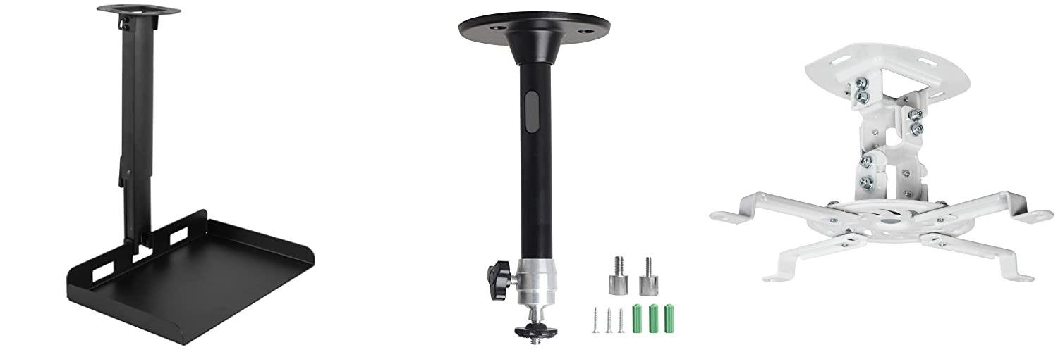 The VIVO Universal Adjustable Ceiling Projector Mount is a great way to hang your projector. It works with regular and mini projectors. It has extending arms and comes in white. The mount lets you adjust the angle to get the best view. It is made of strong steel and can hold projectors up to 30 lbs. It is easy to install and keeps your projector close to the ceiling.