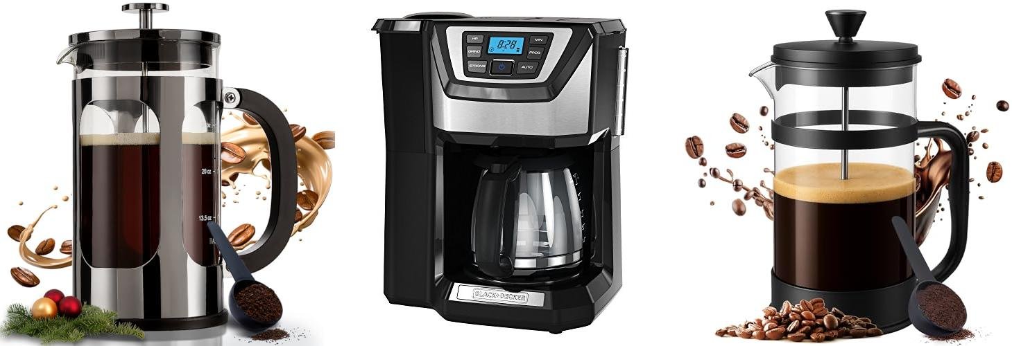 - French Press: You steep coffee grounds in hot water, then press a plunger down. This makes a rich, full-bodied coffee.