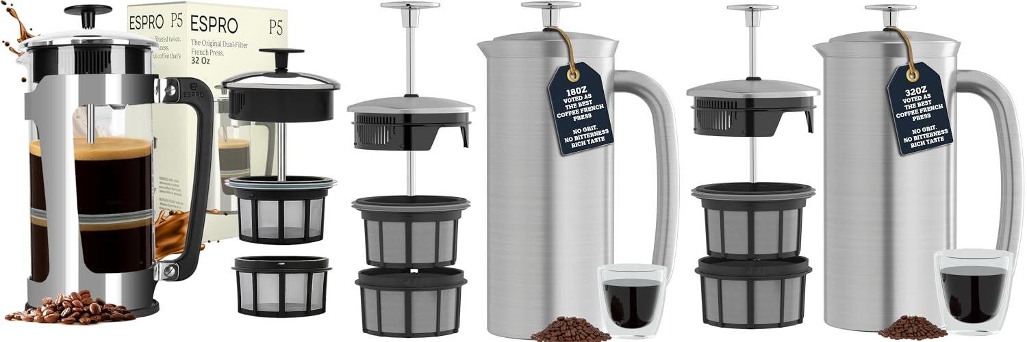 1. ESPRO P5 French Press Coffee Maker – Patented Double Micro-Filter for Grit Free Brew