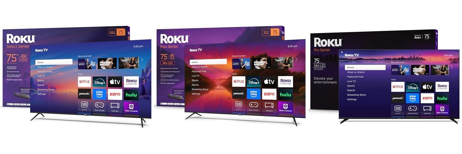 Roku Smart TV 2025 – 75-Inch Plus Series, Mini-LED TV – RokuTV with Enhanced Voice Remote – Flat Screen 4K QLED Television with Dolby Vision & Wi-Fi for Streaming Live Local News, Sports
