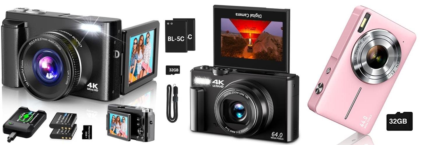 The 4K Digital Camera is designed for both photography and vlogging. It has a 64MP resolution and a 3-inch flip screen. This camera also features 18X digital zoom, a built-in fill light, and a microphone. It’s a great option for beginners, kids, and anyone who wants an easy-to-use camera. It even comes with a 32GB Micro SD card and other accessories.