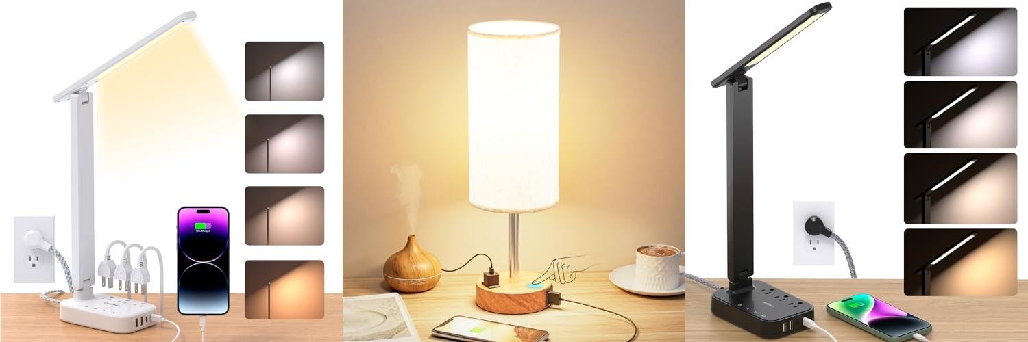 • All-in-One Power Hub: This lamp has 3 AC outlets and 4 USB ports (including 2 USB-C!). Charge your phone, tablet, and other gadgets all at once, whether the lamp is on or off. It really tidies up your space.