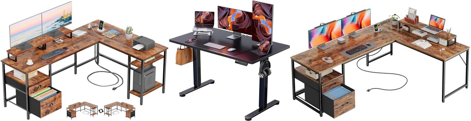 - Convertible Design: Easily switch between a 67-inch L-shaped desk or a 98.4-inch two-person desk. This desk offers flexible layouts for different spaces and needs. It can hold multiple computers, making it great for multitaskers.
