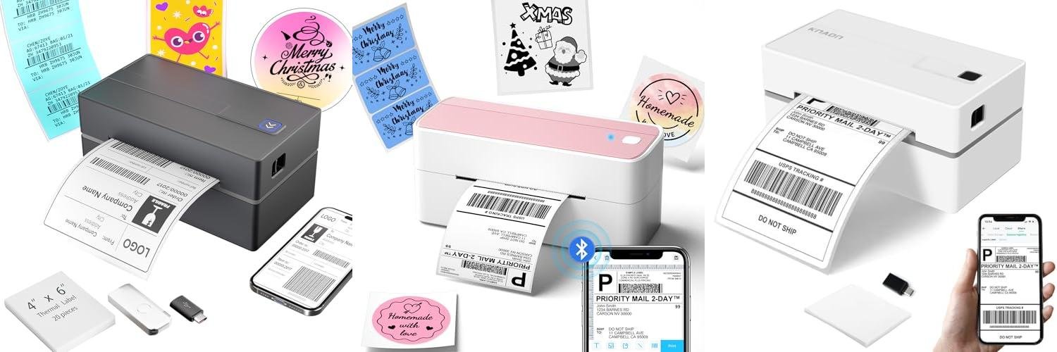 Meet the KNAON Bluetooth Thermal Shipping Label Printer, your new best friend for small business shipping! This printer makes creating and printing shipping labels super easy. It works with your phone, computer, and all your favorite selling platforms.