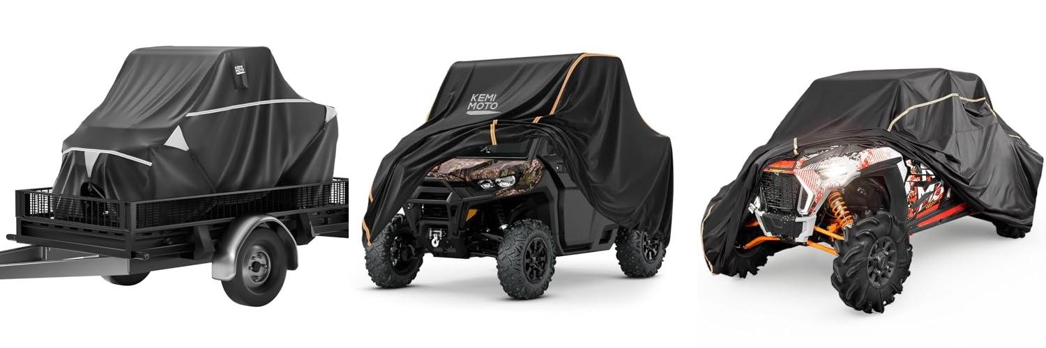 The KEMIMOTO Trailering UTV Cover is built to protect your UTV in all weather. This cover works great for both indoor and outdoor storage. It also does a fantastic job when you are trailing your UTV. This cover keeps your vehicle safe from rain, snow, wind, and the sun. It is designed for many UTV models, like Can Am Defender and Polaris Ranger.