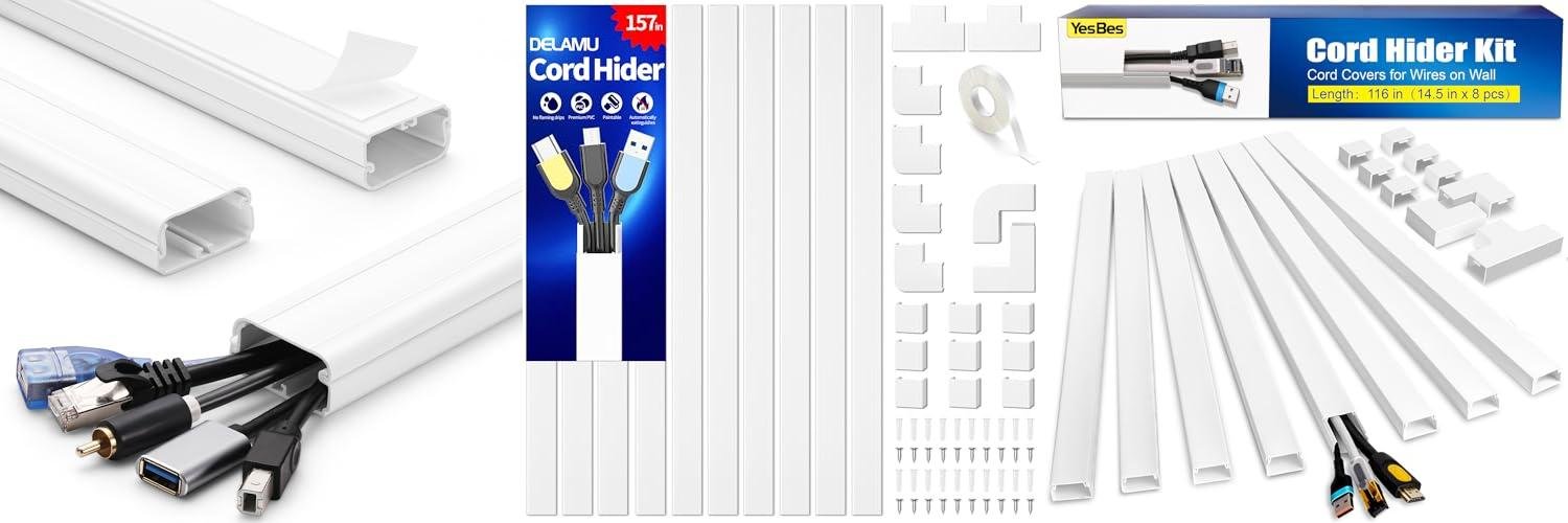 Tired of messy wires ruining your room’s look? The YesBes 116in Cord Hider Kit is here to save the day. This white cable raceway is designed to neatly hide cords on your walls, perfect for wall-mounted TVs. It’s easy to install and can even be painted to match your decor, making your living space look clean and stylish.
